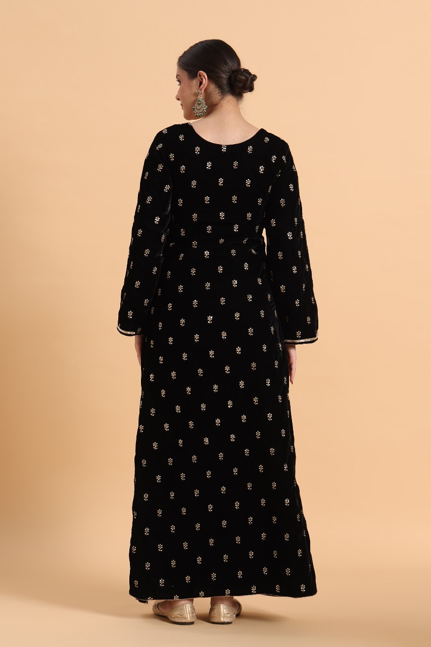 Black Velvet Kaftan with Zardosi Embroidery
